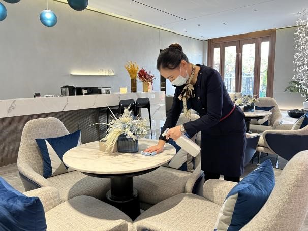 售楼处里外全部360°无死角消毒,工作人员每日对沙盘、洽谈区、样板间、走廊通道、垃圾桶、门把手、各类开关等各个区域及卫生死角进行全面消毒清洁,以严管理、重细节的态度继续执行防疫手段,积极响应“严格消毒”防疫要求,认真负责保证公共环境。