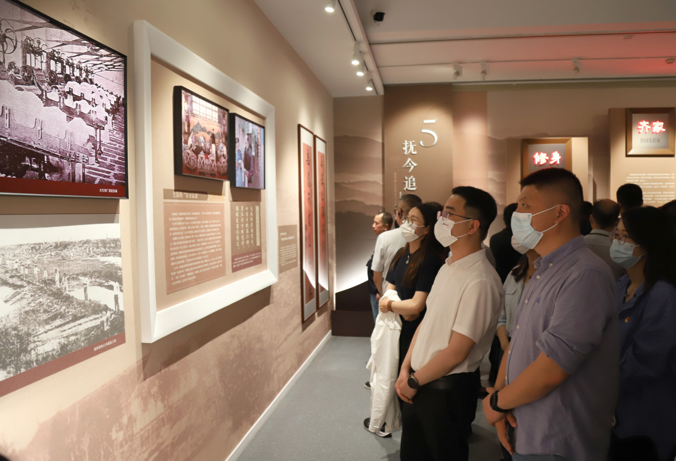 在讲解员的带领下,大家走进展厅,从勤俭自律、淳朴家风、为政以德、天下为公、抚今追昔五个维度深入学习张謇廉正思想,细细感悟传承张謇先生诚信廉公、勤俭为民的价值观,深切感悟张謇诚信廉公、勤政为民的一生。