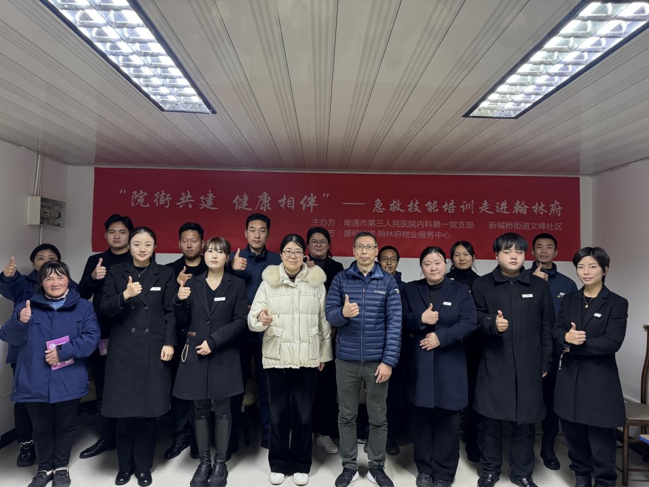 近日,在院街共建的积极推动下,由南通市第三人民医院内科第一党支部与新城桥街道文峰社区联合主办的急救技能培训活动在翰林府盛大开展,44118太阳成城官方网悦家积极组织物业人员全程参与其中。此次活动是构建社区安全防护网的重要举措,为提升物业团队应急救援水平提供了宝贵契机。