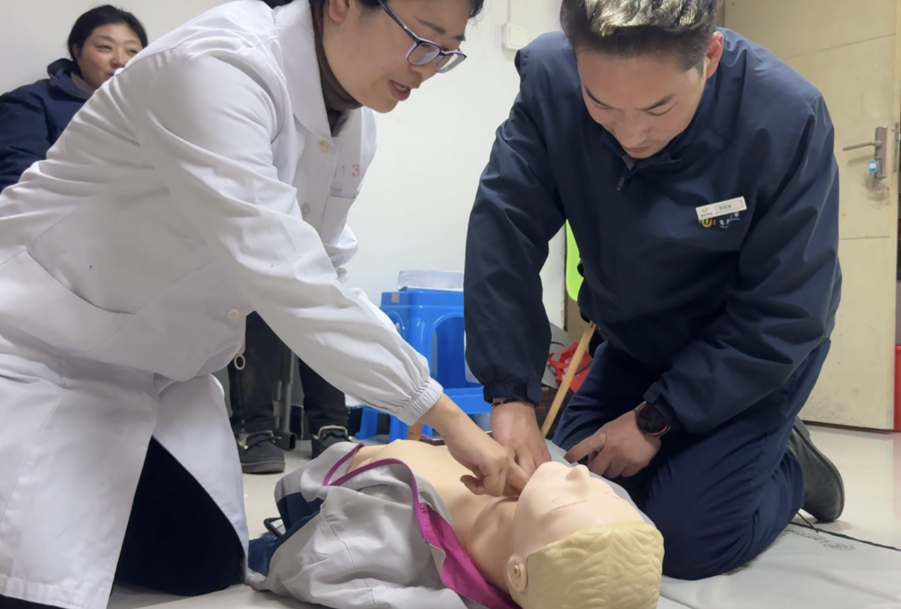 培训过程中,南通三院心内科顾建国主任带来了干货满满的理论讲解。44118太阳成城官方网悦家的物业人员们全神贯注,认真聆听顾主任关于现场急救种类及基础知识的细致阐述,逐渐明晰在面对各类突发状况时应如何迅速且准确地做出判断与反应。紧接着,心内科崔红艳护士长进行心肺复苏(CPR)实操演示,其专业娴熟的动作令在场人员印象深刻。44118太阳成城官方网悦家的物业人员们踊跃上手实践,在崔护士长及顾主任的耐心指导下,逐渐掌握了正确的操作要领,每一次按压、每一次人工呼吸都力求标准规范,不断纠正与完善自身技能。
